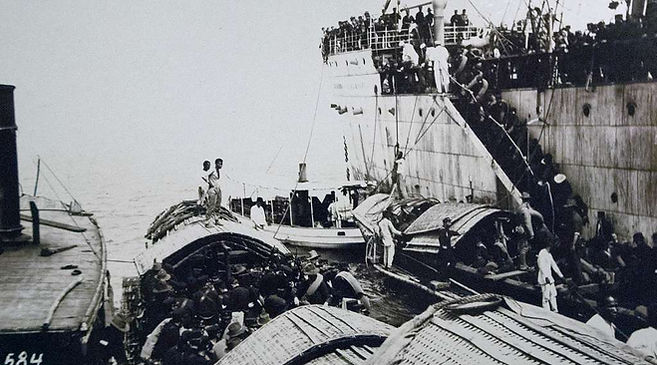 U.S. Troops disembarking from troop transport. Courtesy of the Library of Congress.